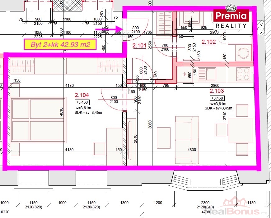 | Dispozice bytu | 2+kk |