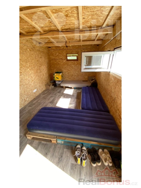 dřevěná chatka o výměře 21 m2 s přivedenou elektřinou