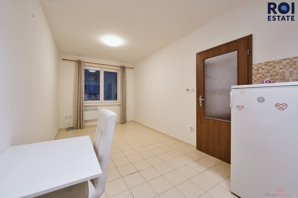 Byt se nachází v menším cihlovém domě, který má své kouzlo i pocit soukromí. Hlavní místnost je světlá, dobře členěná a nabízí prostor pro vytvoření pohodlného domova podle svých představ. Kuchyňský kout je prakticky vybavený, nechybí sporák, trouba ani lednice. Velké okno vnáší dovnitř přirozené světlo a dlažba v celém bytě zajišťuje nenáročnou údržbu.