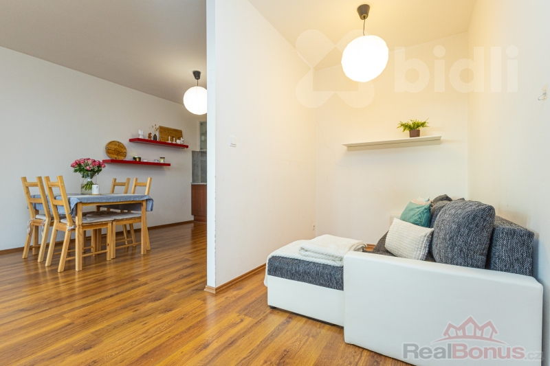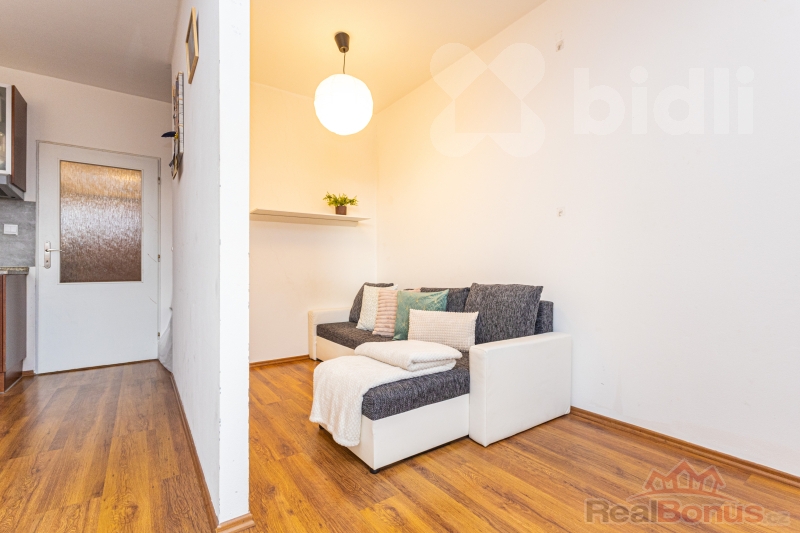 Světlý a vzdušný byt 1+kk ve 3. patře s balkonem, ideální pro městské bydlení i investici. Dispozice je chytře řešená příčkou, která přirozeně odděluje obývací a spací část. Laminátová podlaha, kuchyňská linka a vestavěné skříně v předsíni nabízejí dostatek úložného prostoru. Koupelna s vanou, WC a pračkou.