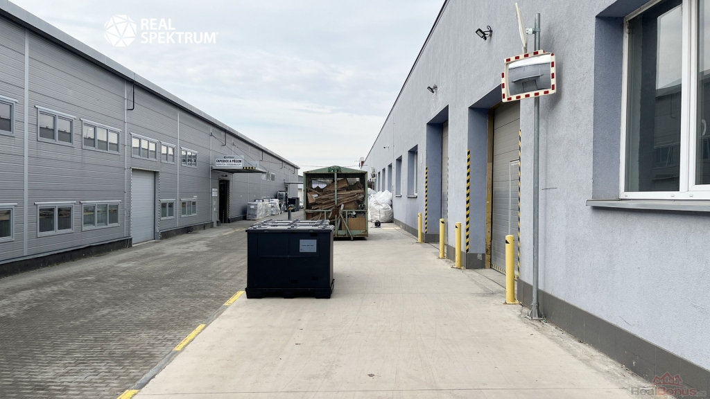 8 m, výška pod vazník 6,2 m, sekční vrata 3,5 x 3,5 m, únosnost podlahy 9 t/m2, temperované a vytápěné prostředí, dostatek parkovacích míst v okolí objektů, odstavné plochy, možnost pronájmu kanceláří ve vedlejší administrativní budově. Vybavenost: elektrická energie, voda, odpad, plynové vytápění.