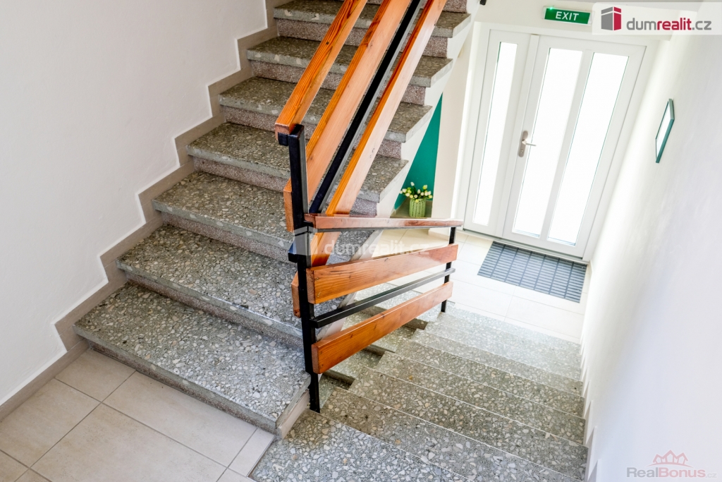 Bydlení je v nájemním rodinném domě o třech podlažích a byt zaujímá celý půdorys 2. nadzemního podlaží se samostatným vchodem ze společné chodby a se samostatnými odečty energií.
