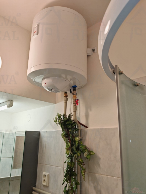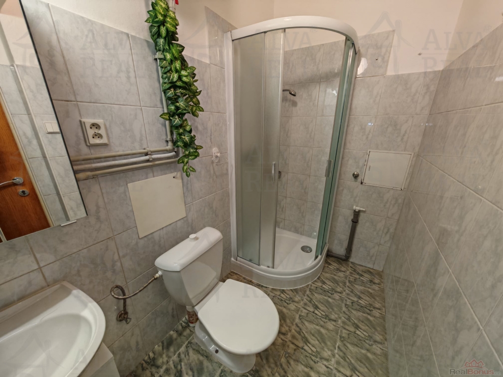 Dispozice: hlavní místnost 7x5 m?, prostorná koupelna s novým sprchovým koutem, WC a umyvadlem se zrcadlovou skřínkou o výměře cca 4 m?, chodba cca 6 m?. Hlavní místnost vybavena kuchyňskou linkou s el. sporákem, digestoří a osvětlením. Vytápění bytu centrálním plynovým kotlem + radiátory, ohřev teplé vody zajištěn novým bojlerem v koupelně.