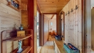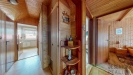 Při příchodu do bytu vstupujeme do chodby, po pravé straně se nachází pokoj , může sloužit jako dětský. Chodbou projdeme do slunné kuchyně. Na chodbě máme vchody do koupelny a samostatné WC. Vstup z kuchyně do obývacího pokoje je zajištěn velkým průchodem, který tyhle dvě místnosti spojuje. Celá jednotka je průchozí. Ložnice je vedená v chalupářském stylu, dominantu tvoří pěkné přiznané trámy.