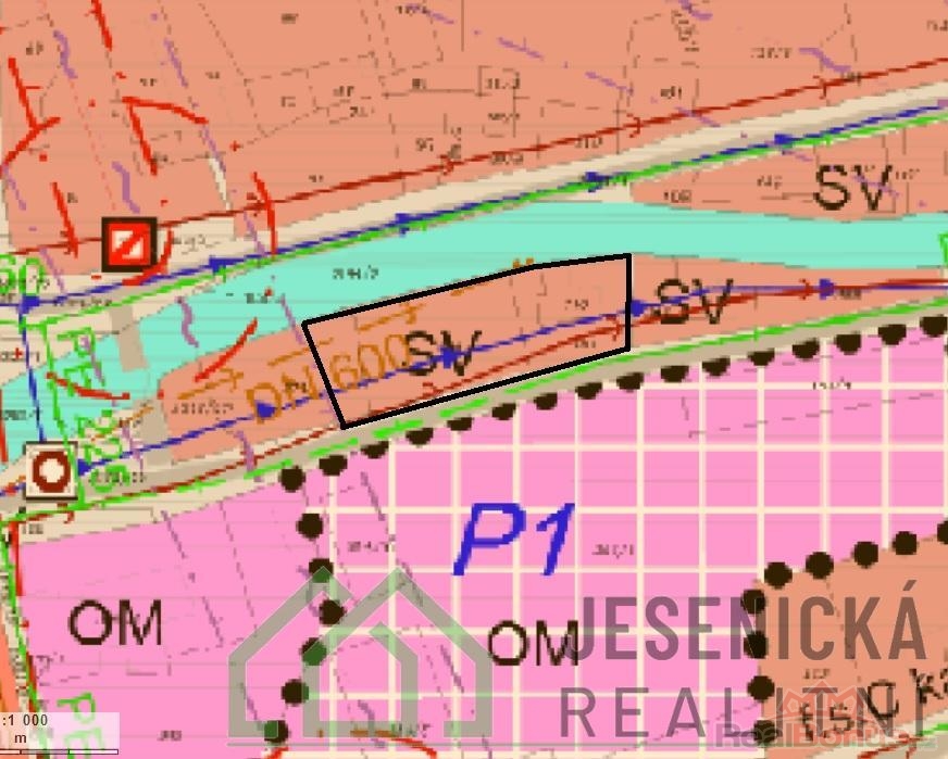 Udržovaný a oplocený pozemek s ovocnými stromy ( hrušně, jabloně) má plochu 1160 m2 , je vedený jako stavební parcela a v územním plánu se nachází v SV - plochy smíšené obytné - venkovské. Hlavní využití jsou stavby pro bydlení v rodinných domech. V zadní části pozemku nalezneme technické budovy na uskladnění nářadí, nebo možná i chov drůbeže. Vjezd je z městské asfaltové cesty vedoucí okolo.