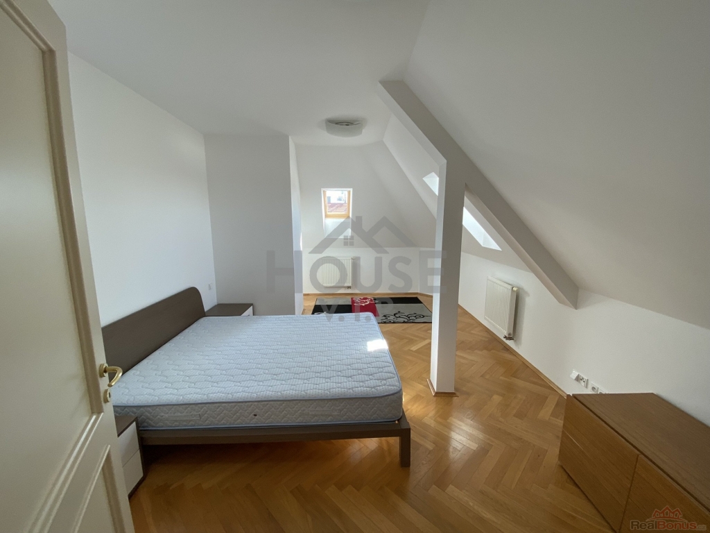Ve druhém patře se nachází prostorná ložnice 17,9 m2 se šatnou a několika úložnýma prostorama
