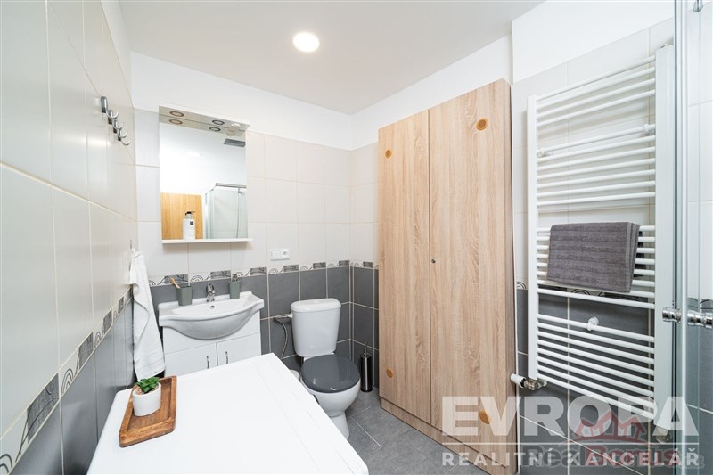 Dispozice bytu: po vstupu do bytu se ocitnete v chodbě. Z této chodby se postupně dostanete do pokoje s kuchyňským koutem, dále do koupelny s WC a sprchovým koutem a následně do obývacího pokoje a dvou samostatných neprůchozích pokojů.
