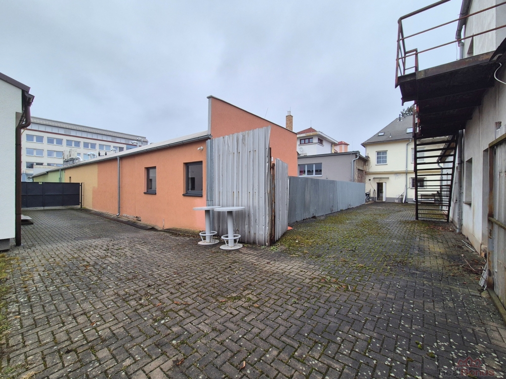 V zadní části areálu je dvůr, ze kterého je přístup k nástavbě využitelné jako sklad či kanceláře (32.8 m2).