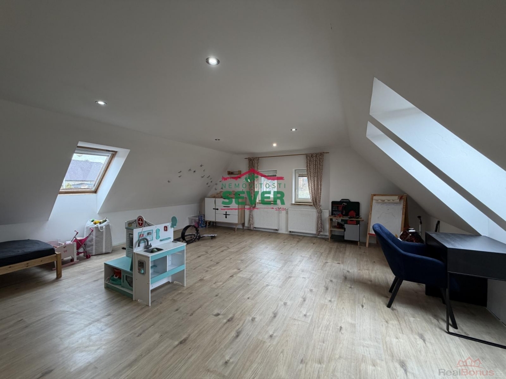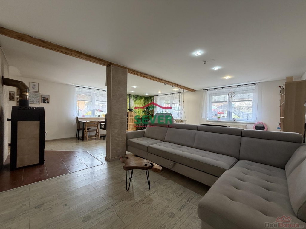 Nemovitosti SEVER Vám zprostředkují koupi patrového rodinného domu v obci Hrušovany, okres Chomutov. Dům, o zastavěné ploše 104 m2, prošel kompletní rekonstrukcí a je připraven k okamžitému nastěhování bez nutnosti dalších investic. Dispozice domu nabízí komfortní rodinné bydlení - dvě koupelny, samostatnou toaletu, ložnici, prostorný dětský pokoj s možností přepažení na dva samostatné pokoje, obývací pokoj, kuchyni a prádelnu. Dům je částečně podsklepený. V rámci rekonstrukce byly kompletně vyměněny rozvody elektřiny a vody. Vytápění zajišťuje plynový kotel v kombinaci s krbovými kamny, ohřev vody je řešen elektrickým bojlerem. Nemovitost je napojena na veřejnou kanalizaci. Na dům navazuje stodola s dílnou, kterou lze díky vjezdu přímo ze silnice využít jako parkovací stání. Na zahradě o výměře 793 m2 se dále nachází kaskádovité záhony, zahradní domek a terasa. Součástí koupě je také zahrada, o výměře 319 m2, nacházející se přes komunikaci a je aktuálně pronajímána. Veškerou občanskou vybavenost nalezneme v nedalekém městě Chomutov. V případě zájmu zajistíme optimální variantu financování pro naše klienty.