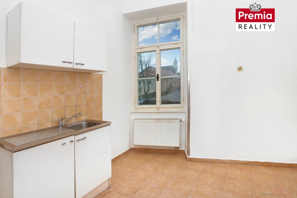 K prodeji nabízíme prostorný slunný byt o dispozici 2+1, nacházející se v prvním patře cihlového domu v samém srdci města Znojma na Mikulášském náměstí.