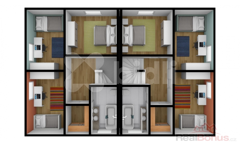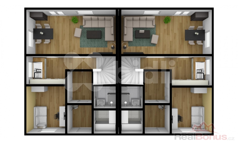 Celková cena obsahuje cenu pozemku, projekt na typový dvojdům, základovou desku, připojení na IS a výstavbu dvojdomku na klíč. Můžete si vybrat z celé řady typových domů, ale i měnit vnitřní dispozice a zvolit si i z čeho bude Váš dům postaven. Cena se potom bude upravovat dle Vašich požadavků.
