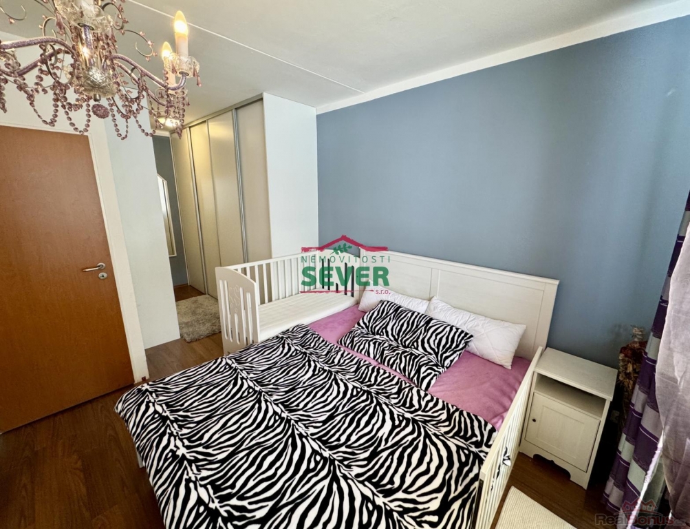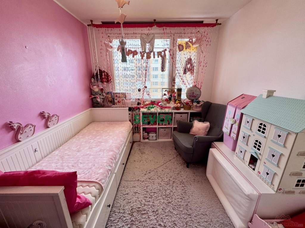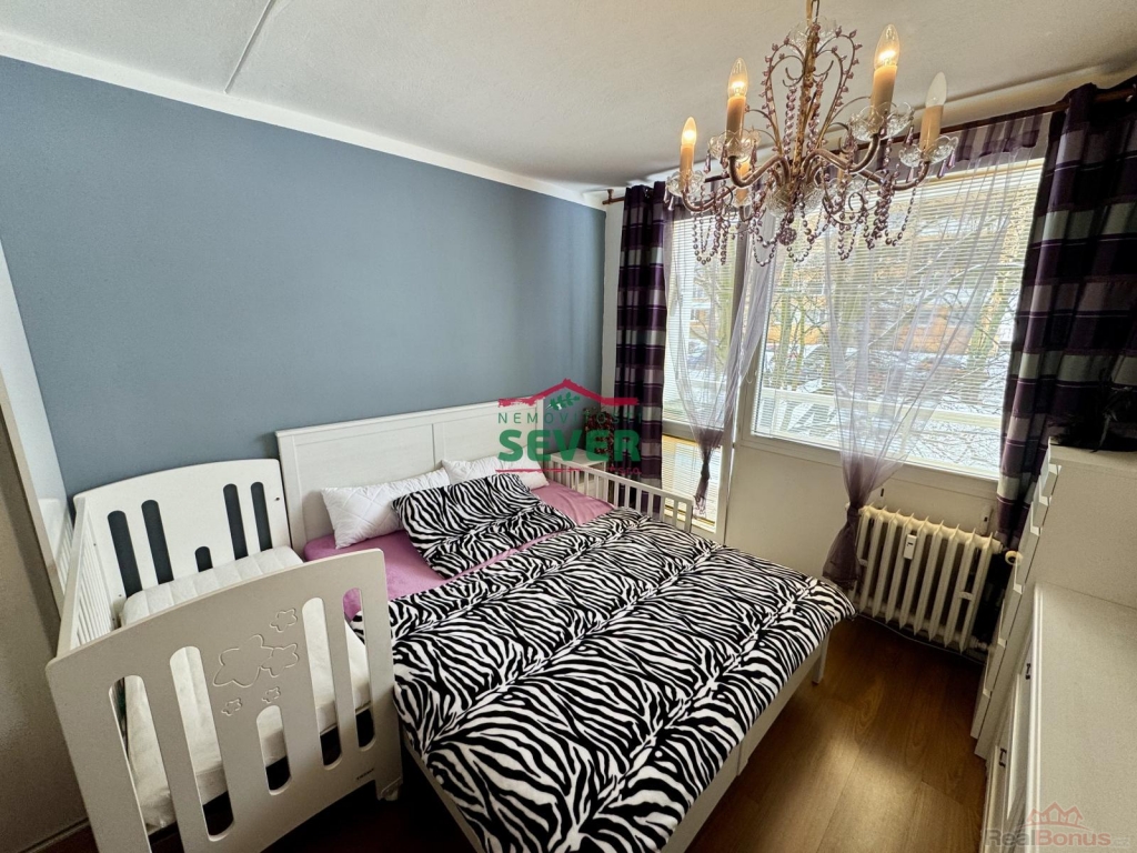 Nemovitosti SEVER vám zprostředkují koupi bytové jednotky s dispozicí 4+1 s lodžií v osobním vlastnictví v Mostě v ul. V. K. Klicpery. Bytová jednotka s plochou 83 metrů čtverečních se nachází ve třetím nadzemním podlaží panelového domu s eurovýtahem, situovaná v klidné části města. Byt prošel kompletní rekonstrukcí a skládá se z předsíně, chodby, dvou dětských pokojů, ložnice s vlastní šatnou a vstupem do lodžie, společně řešené koupelny s toaletou, kuchyně a obývacího pokoje propojeného s jídelním koutem. Rekonstrukce bytu zahrnuje elektroinstalaci v mědi, rozvody vody a odpadů, zděné jádro se sociálním zařízením v keramickém obkladu, kuchyňskou linku s vestavěnými spotřebiči, podlahy v celém bytě, snížené stropy s bodovým osvětlením v chodbě a koupelně, dřevěné obložení radiátorů v kuchyni, vestavěné skříně v dětských pokojích a ložnici, interiérové dveře a rolety den/noc v obývacím pokoji. Nadstandardem bytu je koupelna vybavená vanou i samostatným sprchovým koutem. Dům, ve kterém se byt nalézá, prošel revitalizací fasády včetně zateplení, střechy, oken, vchodových dveří a výtahů. V domě je k dispozici společný uzamykatelný prostor (kolárna). K domu náleží také dětské hřiště hned za domem. Veškerá občanská vybavenost je k dispozici v blízkém dosahu, centrum města vzdálené pouze 7 minut jízdy automobilem. Parkování je možné přímo u domu. V případě zájmu vám zajistíme optimální variantu financování na tuto nemovitost za zvýhodněných podmínek pro naše klienty.