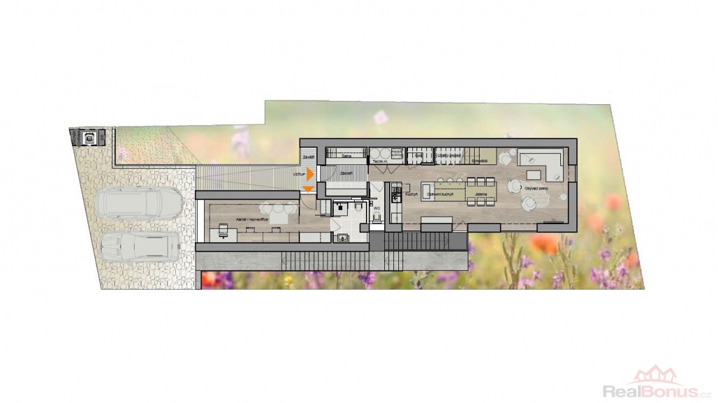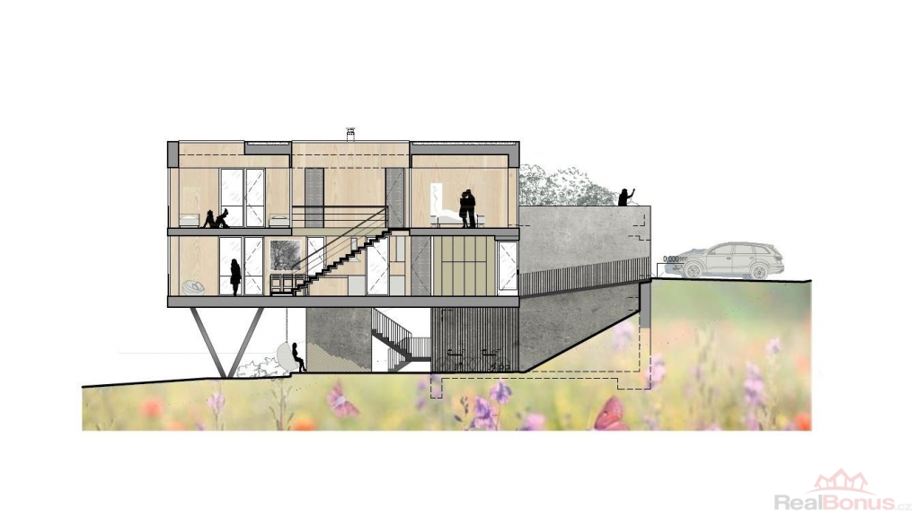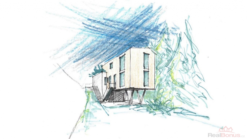 Připraven k realizaci vašeho vysněného bydlení - pro pozemek je již zpracována architektonická studie na stavbu samostatně stojícího rodinného domu 3+kk s ateliérem (kancelář), která umožňuje snadné a rychlé zahájení výstavby dle vašich představ.