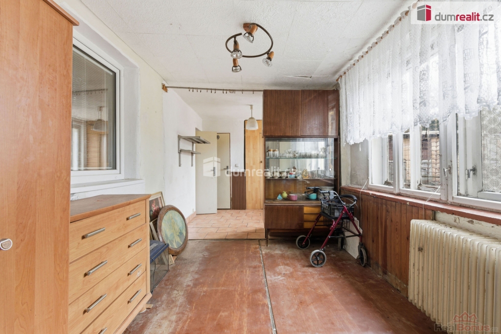 (včetně právního a poradenského servisu, provize RK), Dumrealit.cz Vám zprostředkuje koupi přízemního rodinného domu o dvou bytových jednotkách o dispozicích 2+1 a 1+1, v klidné části Nového Přerova, v těsné blízkosti rakouských hranic. První bytová jednotka má dva pokoje, kuchyň, koupelnu s vanou, a samostatné WC. Druhá bytová jednotka má pokoj, kuchyň, a koupelnu se sprchovým koutem, a samostatným WC. Obe jednotky rozděluje centrální vstupní chodba, s přístupem na verandu a dvůr. Na dvoře najdeme přístavky, za ním pak krásnou zahradu. Na domě neproběhla významnější rekonstrukce, a skýtá tak možnost se realizovat dle svých vlastních představ. Dům může fungovat jako celek i jako dvougenerační bydlení, navíc se samostatným měřením energií. Vytápění řešeno krbovými kamny, elektrickými přímotopy a plynovým kotlem. Ohřev vody přes bojler. Napojeno na veškeré IS: Elektřina 220/400V, voda, kanalizace, plyn. Studna. Dům je bez závazků, vhodný jako zástava budoucího vlastníka.