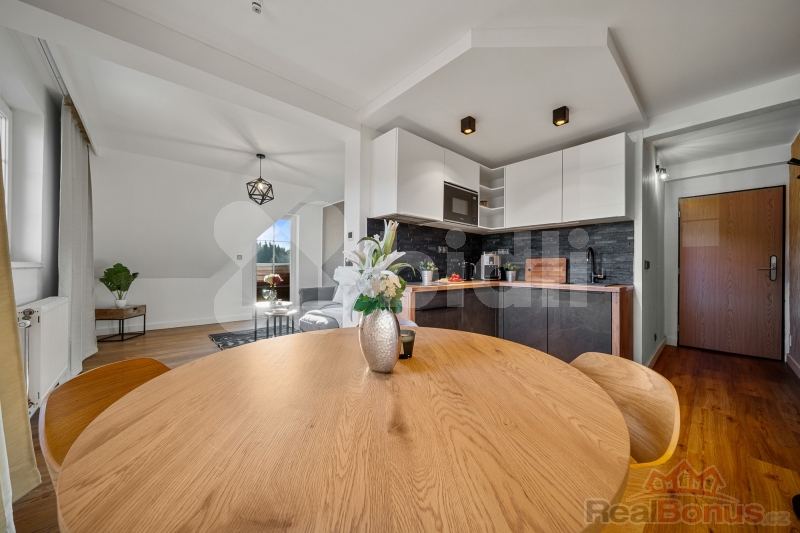 Nabízím k prodeji horský apartmán o dispozici 2+kk (50 m2) na Pomezních boudách v obci Horní malá Úpa, která je nejvýše položeným lyžařským střediskem Krkonoš.