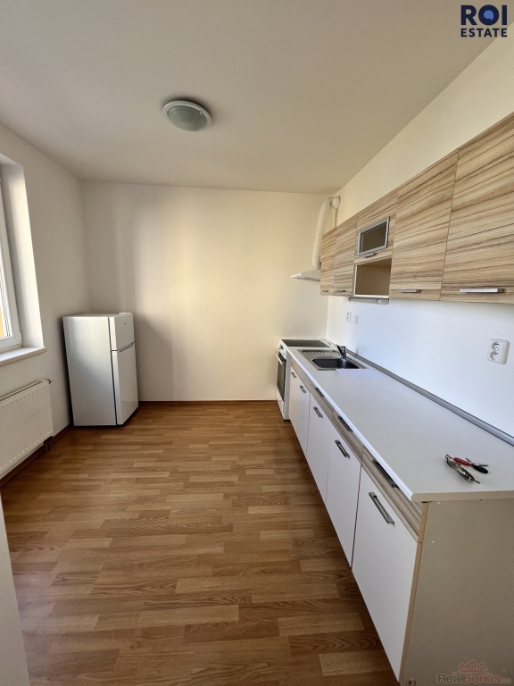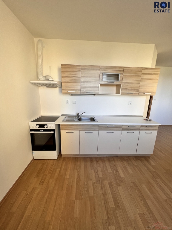 Byt nabízí prakticky řešený obytný prostor s kuchyňským koutem, který je vybaven kuchyňskou linkou se sporákem, troubou, digestoří a lednicí. Hlavní místnost je dostatečně prostorná pro pohodlné rozdělení na obývací a spací část.