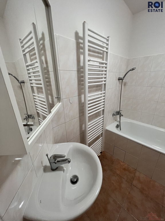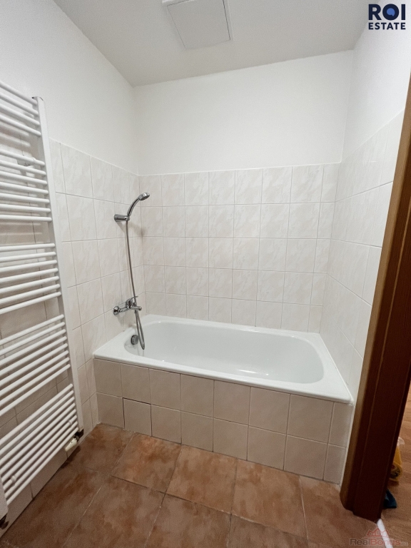Koupelna je vybavena vanou a umyvadlem, toaleta je samostatná. V bytě se nachází také praktická komora/šatna, která nabízí dostatek úložného prostoru. Další úložný prostor zajišťuje sklepní kóje, která je součástí prodeje.