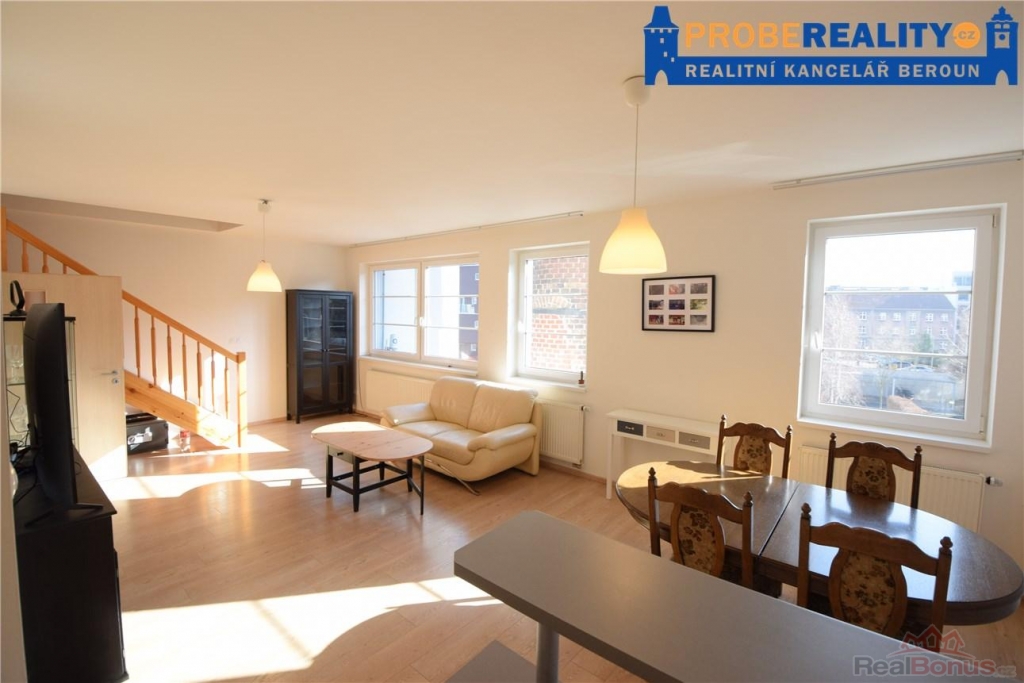 Nabízíme k prodeji dispozičně dobře řešený a slunný mezonetový byt 2+kk / T, 85 m2, nacházející se v 3 NP/3NP cihlového domu ul. V Zahradách Beroun. V prvním patře bytu, nalezneme prostorný obývací pokoj s kuchyní, jídelním koutem, chodbou a WC. V druhém patře se pak nachází velkorysá koupelna s rohovou vanou a WC, dále pak ložnice s přímým vstupem na terasu, ze které je krásný výhled na historické centrum města. Byt tak působí velice příjemným a útulným dojmem. K bytu náleží vlastní parkovací stání. Velice klidná a žádaná lokalita s dostatkem soukromí a zeleně. Veškerá občanská vybavenost v místě. Dobrá dostupnost do centra města a na dálnici D5.