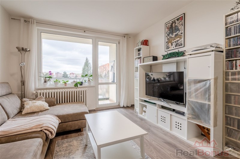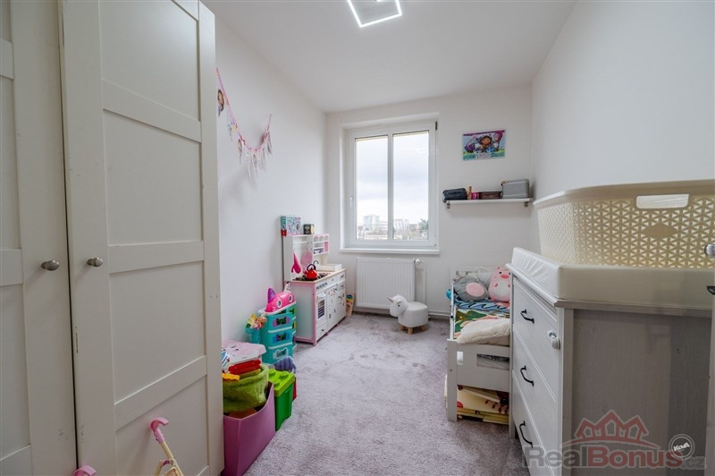 Dominantou je světlý obývací pokoj se vstupem na lodžii s příjemným výhledem do okolí. Samostatná kuchyně je vybavena moderní kuchyňskou linkou se spotřebiči a jídelním koutem.