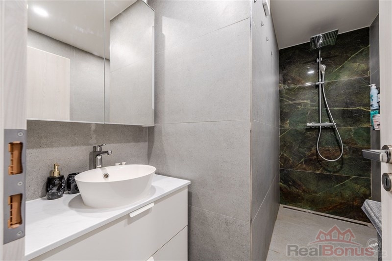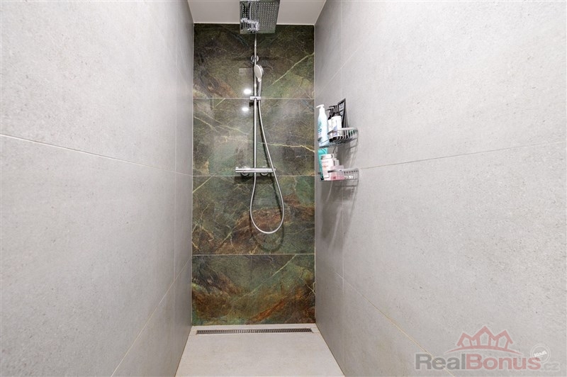 Koupelna je řešena moderně se sprchovým koutem a kvalitními obklady. Samostatné WC je samozřejmostí.