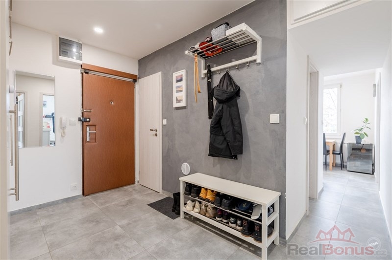 Byt nabízí praktické a funkční uspořádání s dostatkem úložných prostor.
