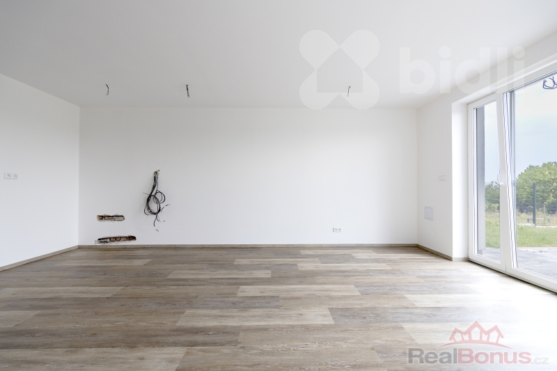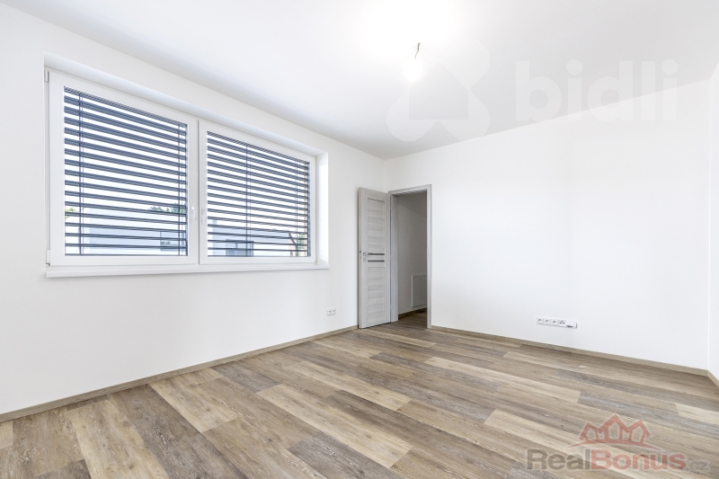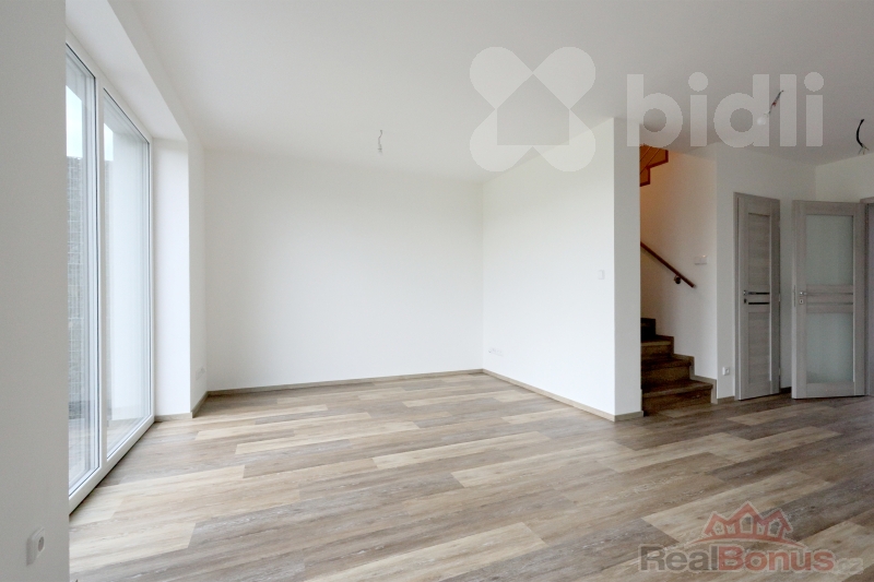 Každý dům má dispozici 5+kk, která zahrnuje čtyři samostatné pokoje a prostorný obývací prostor propojený s kuchyní. Užitná plocha 126 m² poskytuje dostatek místa pro pohodlný rodinný život. Samostatné WC zajišťuje komfort pro každodenní provoz a francouzská okna vedoucí do zahrady přinášejí spoustu denního světla a propojují interiér s přírodou.