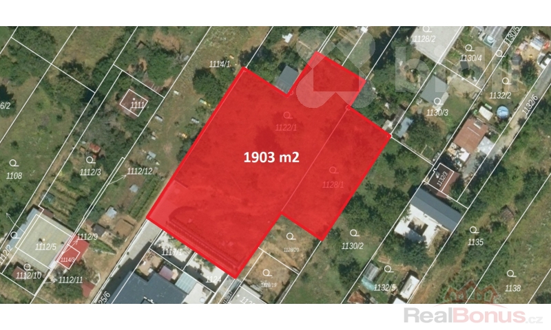 Pozemek má celkovou velikost 1903 m2.
