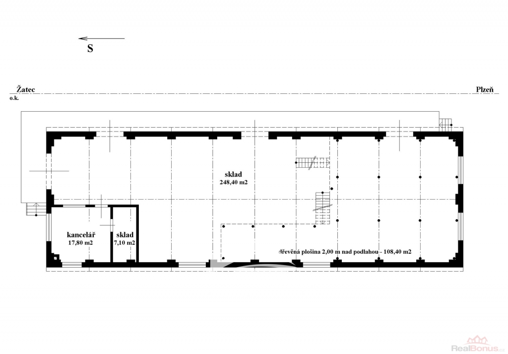Nabízíme k pronájmu zděnou budovu blízko Jateční ulice v Plzni. Budova prošla částečnou rekonstrukcí, nová elektrika s velkým množstvím zásuvek, nové osvětlení, nová lepenka na střeše, vymalování, apod. Nabízí zděnou kancelář ( 17,8 m2 ), sklad ( 7,1 m2 ) a kromě skladové plochy na betonové podlaze ( 248,4 m2 ) je zde možné jí navýšit v 1,5 m výšky o poschodí až 108,4 m2 velké . Výška prostoru je 3,8 m. Vstupní vrata z rampy mají rozměry : výška 2,4 m a šířka 2,6 m . podél budovy s rampou je železniční vlečka. Kanalizace a voda v blízkosti objektu. Vhodné pro sklad nebo lehkou výrobu. Volné ihned, volejte makléři nebo napište na odpovědní formulář u inzerce.