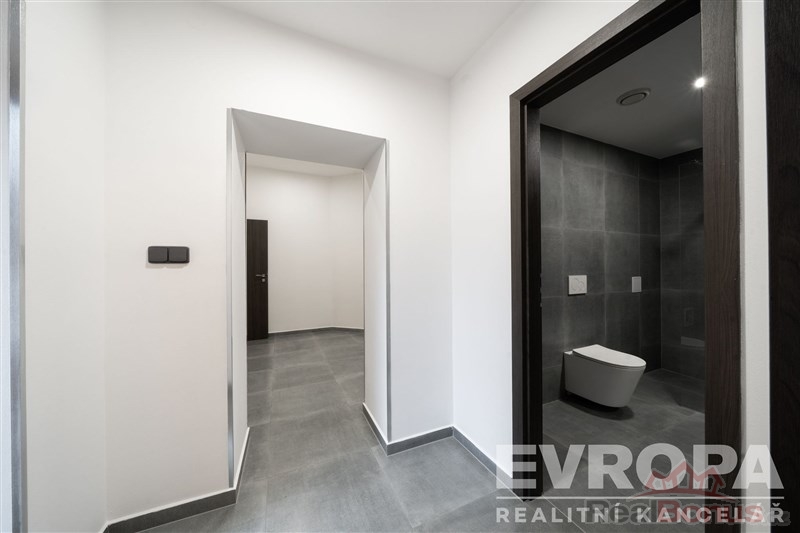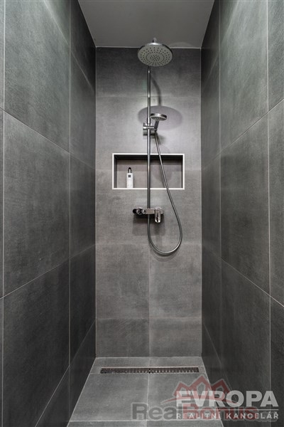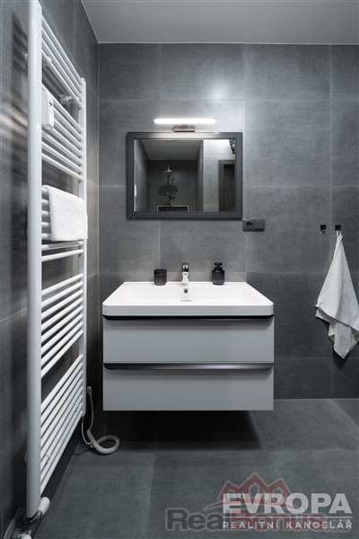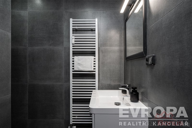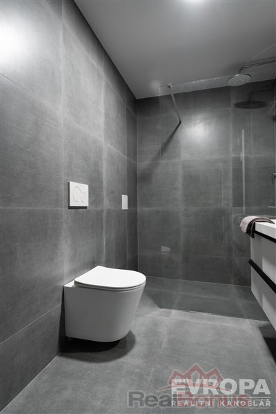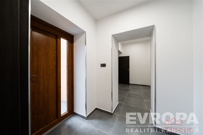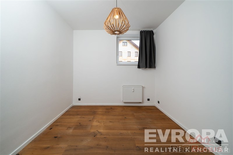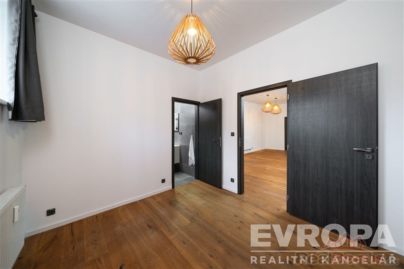 Za vstupními dveřmi je zádveří, ze kterého se vchází do koupelny se sprchovým koutem a toaletou, pokoje a chodby, která dále pokračuje do kuchyně spojené s obývacím pokojem a do dalšího pokoje (ložnice), ke kterému je samostatná plnohodnotná koupelna se sprchovým koutem a oddělenou toaletou. K bytu náleží prostorný sklep a dvě parkovací místa. Byt je po celkové rekonstrukci nové rozvody elektřiny vč. rozvaděče, rozvody vody i odpadů v plastu, dveřní obložky vč. dveří, nové podlahy (v zádveří, chodbě, koupelnách položena dlažba, v obytných místnostech kvalitní dřevěná podlaha). Součástí bytu je moderní kuchyňská linka vč. vestavěných spotřebičů (varná deska, el. trouba, myčka, vestavěná lednice s mrazákem). Okna jsou plastová s trojskly a směrují na severovýchod a jihovýchod. Součástí společných prostor domu je sušárna/kolárna. Za domem je k dispozici zázemí pro posezení / relaxaci.