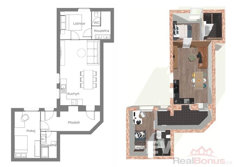| Dispozice bytu | 3+kk |