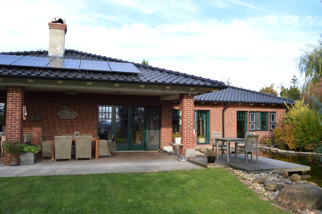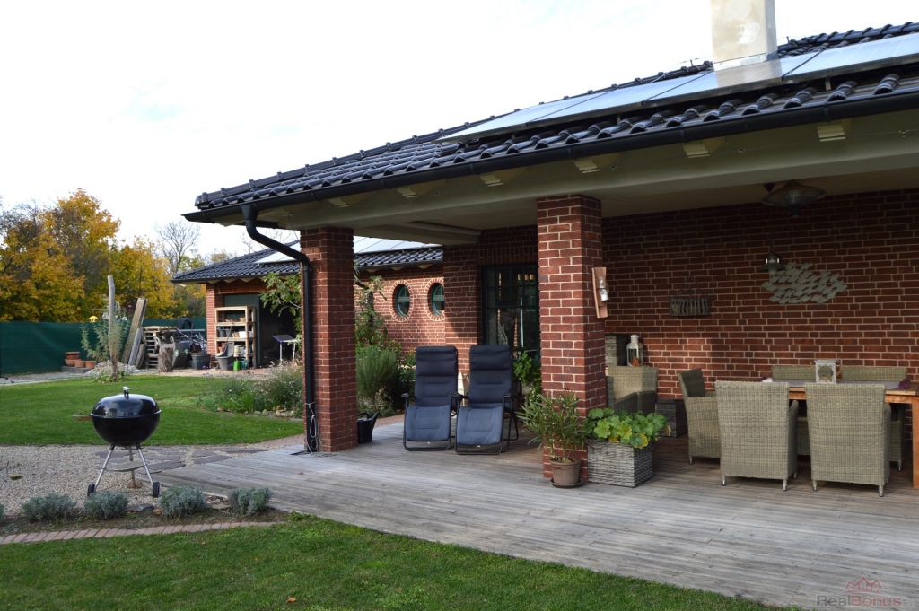 Celý dům je řešen ve vysokém standartu a při jeho budování bylo myšleno na každý detail. Izolace domu je řešena holandským osvědčeným systémem 40 cm Porotherm, 5 cm vzduchová mezera a 10 cm cihelná přizdívka, což společně s vápennými omítkami a vápennými barvami zaručuje perfektní klima v průběhu celého roku. Samotné topení je řešeno pomocí tepelného čerpadla Stiebel vzduch-voda a rozváděno podlahovým topením v celém domě. Pro případ výpadku el. energie je připravena k napojení na stávající rozvaděč benzinová elektrocentrála. Stejně tak jsou nabité baterie z fotovoltaiky připravené v tomto případě dál dodávat el. energii do zásadních částí domu. Fotovoltaika umístěná na střeše o výkonu 6,3kW byla instalovaná v roce 2022, s bateriemi na uložení energie o výkonu 12 kWh a dokonce i nabíječkou na elektroauto. Důraz na ekologii byl kladen i při čerpání vody. Voda je řešena vlastním vrtem v hloubce 78 m a naprosto dostatečným výkonem (2l/s). Samozřejmostí je automatická závlaha.
