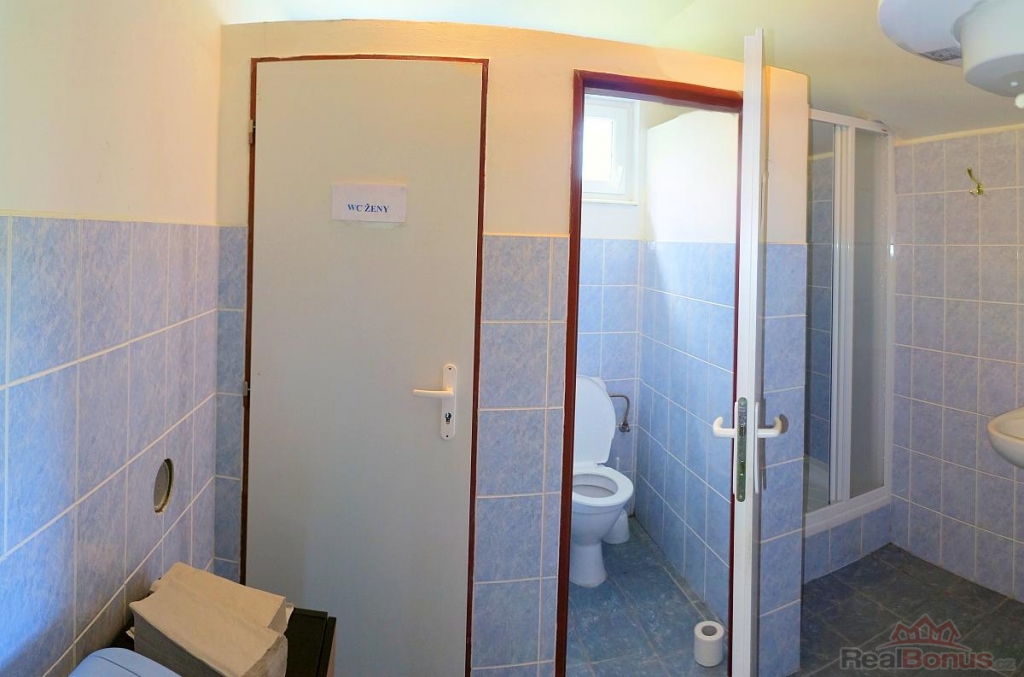 - HLAVNÍ SKLADOVÁ/VÝROBNÍ HALA S KANCELÁŘEMI Vytápěná, patrová budova. Přízemí: Kanceláře, kuchyňka a jídelna pro cca 15 - 20 lidí, dále dílenské šatny, 3x WC, sprcha. Hlavní výrobní a montážní prostory 600 m2, Využitelná výška 3,5m. Vstup do hal zajišťují 3x nákladní, vjezdová vrata o rozměrech cca 3,5x4 m. Podlahy jsou zde betonové, nové. Osvětlení el. halogenové, pomocí oken. Vytápění zajištěno z vlastní kotelny - foto. V kancelářích tel. linka pro připojení na internet. Bezpečnostní elektronická ostraha nacházející se v areálu. PATRO : Kancelář - mistra, velká hala, pomocný jeřáb vedoucí až mimo halu pro usnadnění nakládky a vykládky zboží. Podlahy betonové, vysoká nosnost. Manipulační podlahový otvor pro přepravu zboží z přízemí do patra Destou.