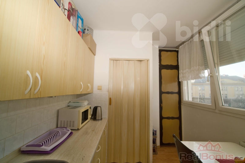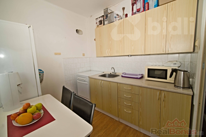 Byt zaujme praktickým řešením a komfortními prvky: ve vstupní chodbě je vestavěná šatní skříň doplněná o botník a věšáky, takže úložné místo máte vyřešené hned od dveří. Kuchyňská linka je starší, ale zachovalá, vaření je řešeno plynovým sporákem. Jádro je částečně umakartové a částečně zděné, přičemž je obložené keramickým obkladem.