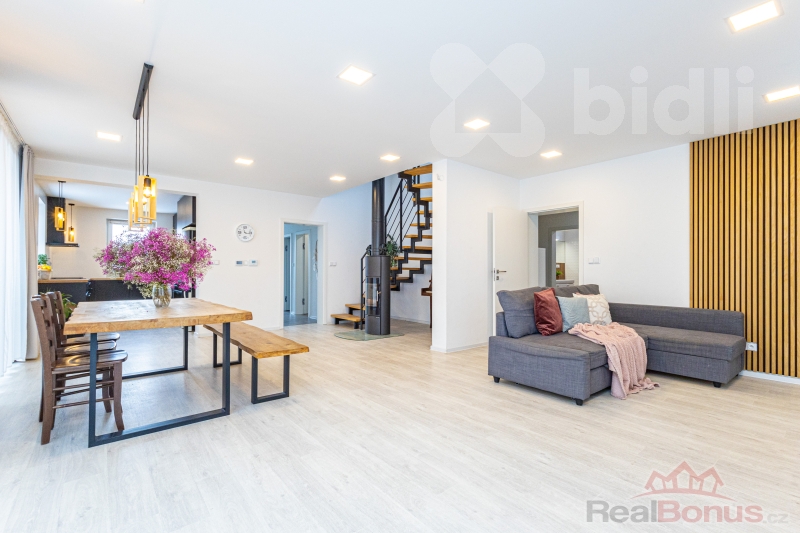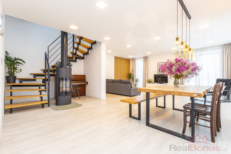 Nabízíme k prodeji novostavbu rodinného domu o celkové ploše 194 m2, na pozemku 785 m2 v klidné části obce Opatovice nad Labem, ulice Školní. Dům nabízí moderní a úsporné bydlení s důrazem na komfort a praktické řešení dispozice. Součástí domu je rekuperace vzduchu, podlahové vytápění napojené na elektrokotel a krbová kamna, která dotvářejí příjemnou atmosféru obytného prostoru a mohou sloužit i jako doplňkový zdroj vytápění.