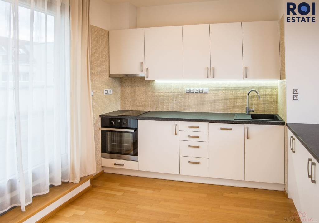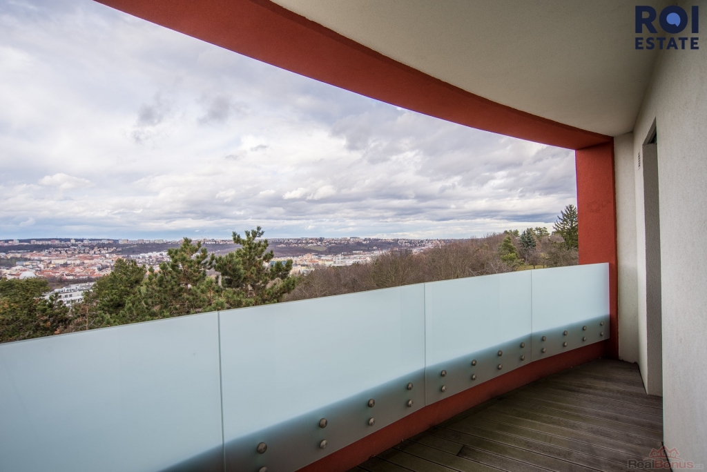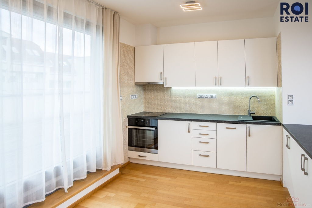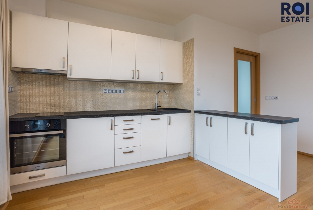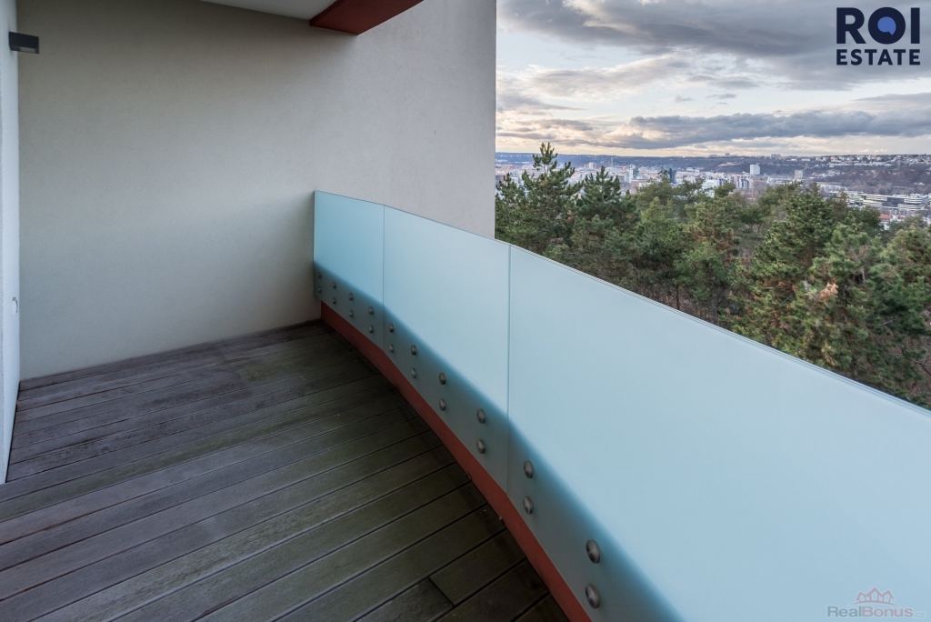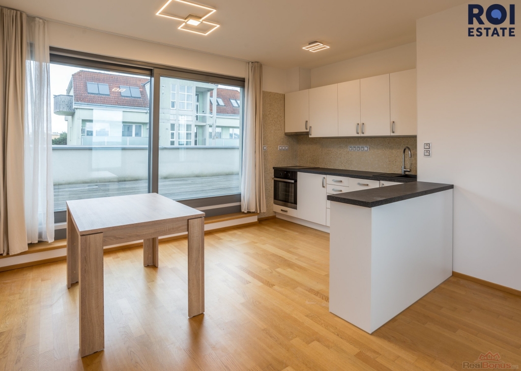 Nabízíme k pronájmu velmi světlý a prakticky řešený byt o dispozici 2+kk a podlahové ploše 49 m2, který zaujme především nadstandardním venkovním prostorem ? terasou o výměře 50 m2 a samostatným balkonem 8 m2. Součástí pronájmu je sklep (4 m2) a garážové stání přímo v budově, což výrazně zvyšuje komfort bydlení.