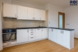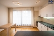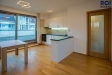 Interiér působí vzdušně a příjemně, velké prosklení přináší do bytu dostatek přirozeného světla po celý den.