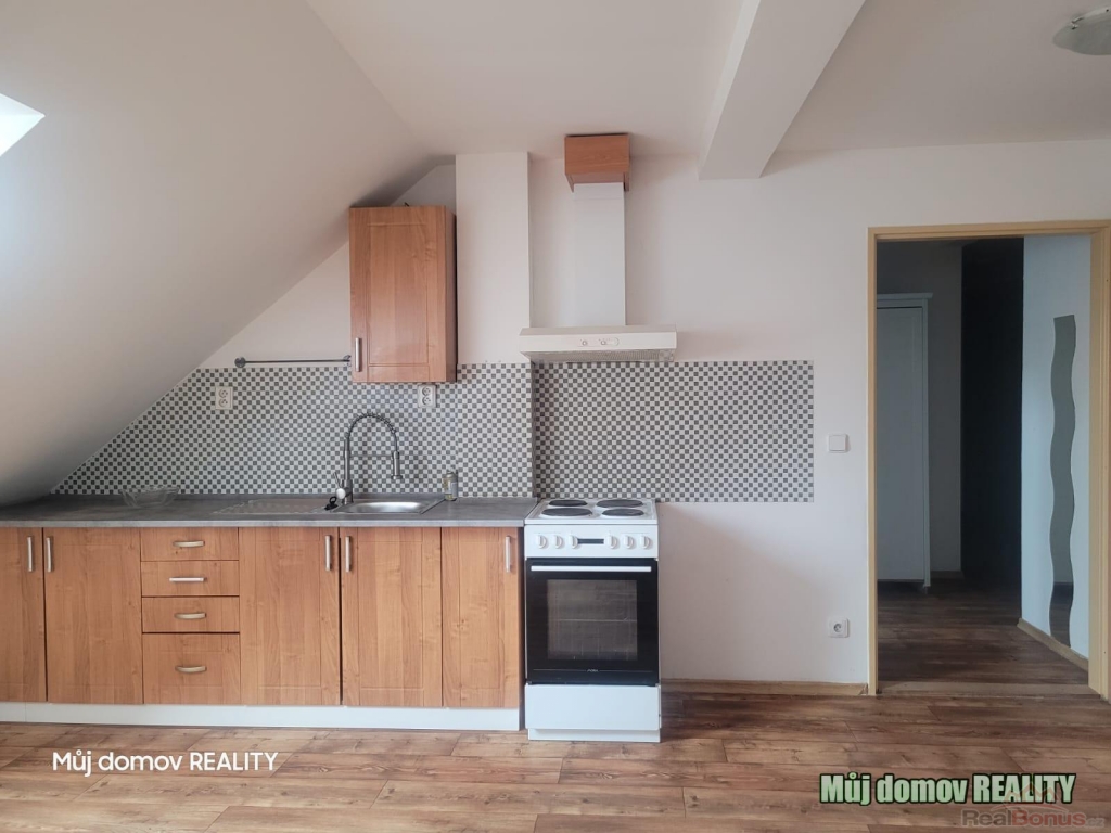 Byt je částečně zařízen nábytkem. Kuchyňská linka s elektrickým vařičem a digestoří, podlahy: PVC + dlažba.