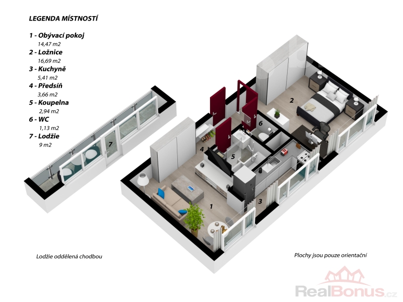 | Dispozice bytu | 2+kk |