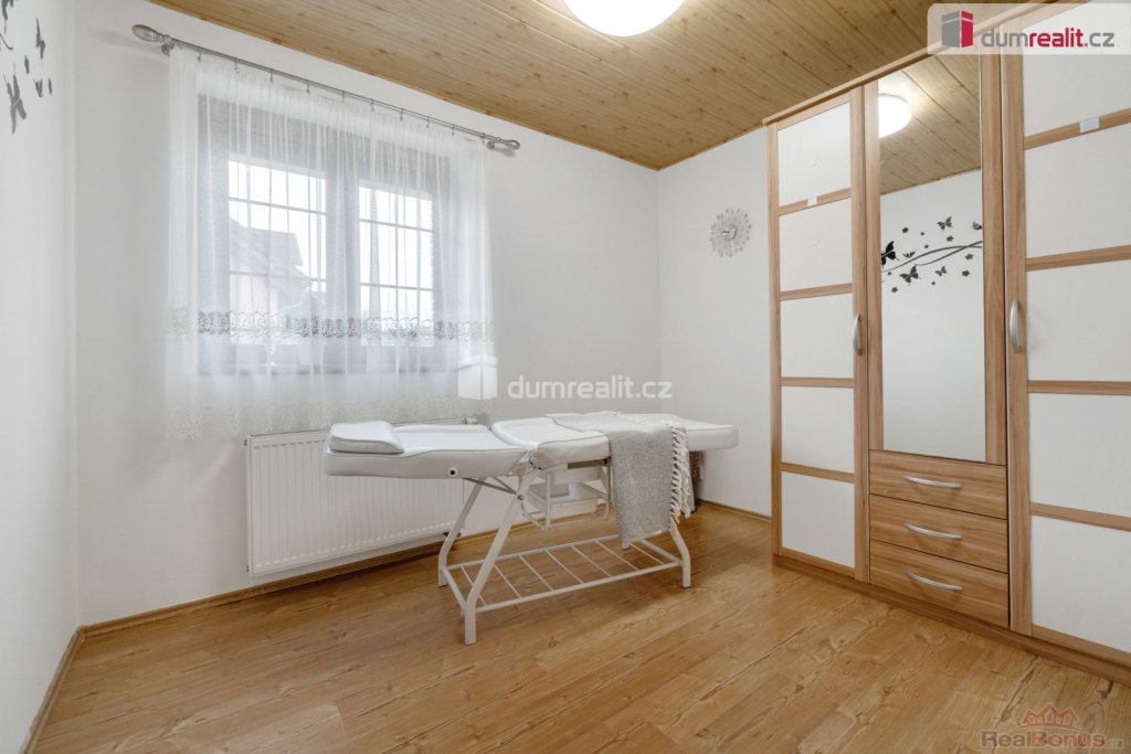 Podkroví: čtyři samostatné pokoje se šatnami a balkonem, koupelna, vstup na zateplenou půdu