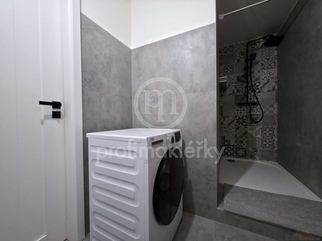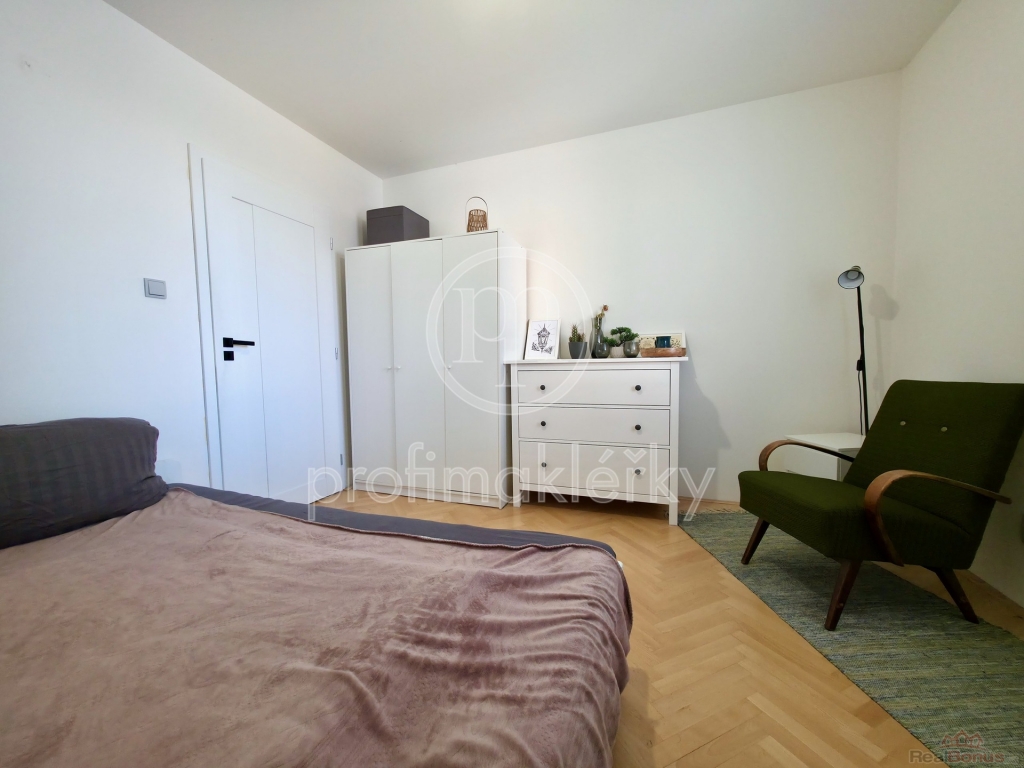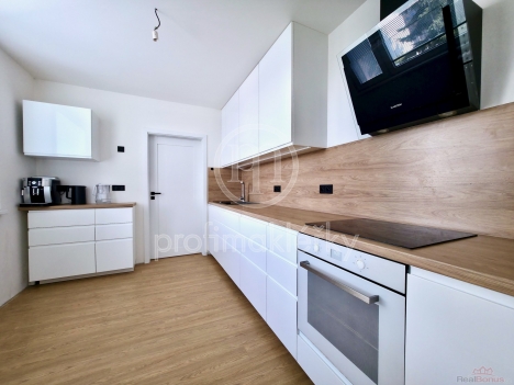 Zde se nešetřilo. Kompletně přepracovaná dispozice bytu maximalizuje využití každého metru čtverečního. Nové zděné jádro, nové rozvody elektřiny a vody, plastová okna, interiérové dveře s obložkovými zárubněmi, nové podlahy v celém bytě. Prostorná šatna, kde má každá věc své místo. Tohle je standard, jaký na trhu potkáte jen výjimečně.