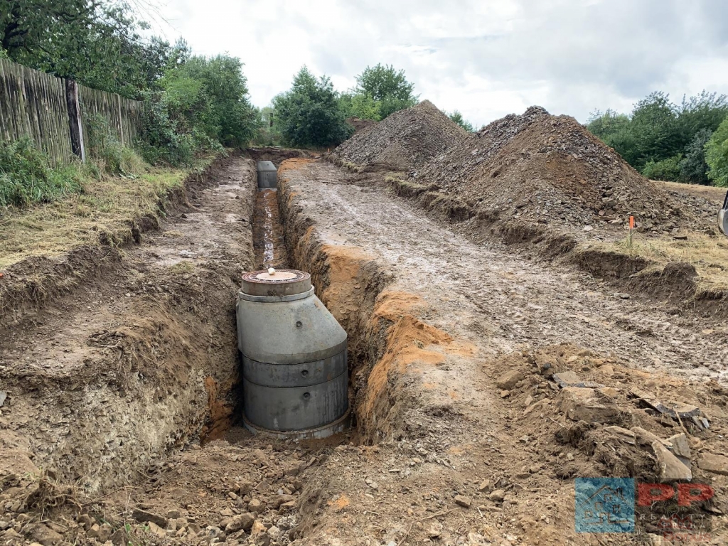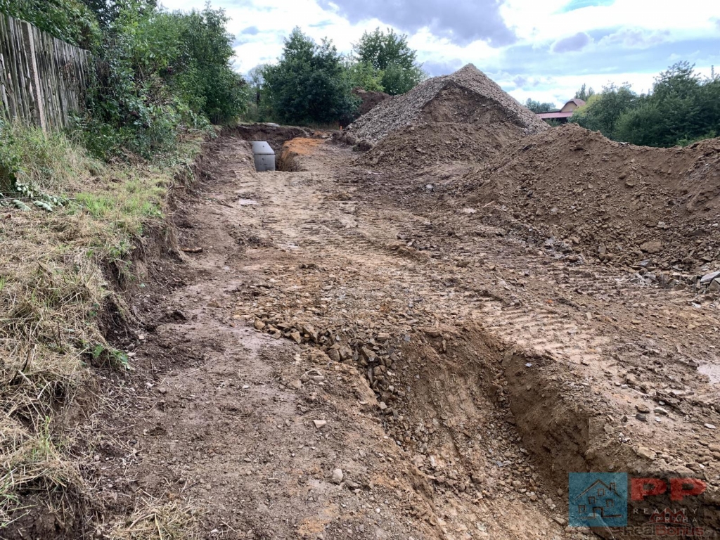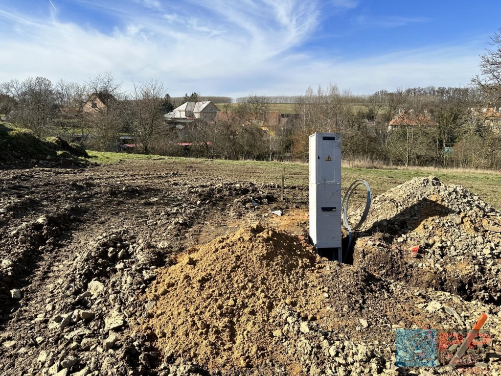 Kanalizace a elektřina jsou přivedeny na hranici pozemku a zkolaudovány.