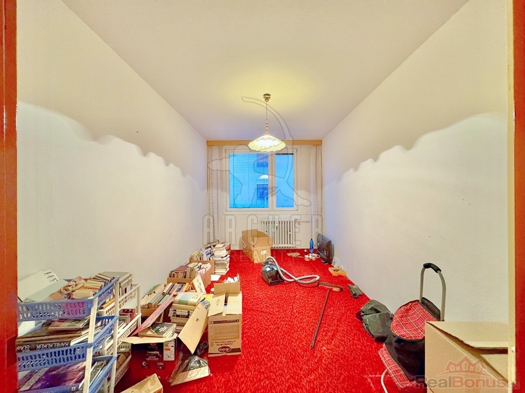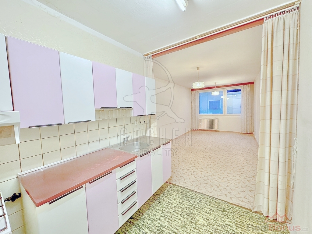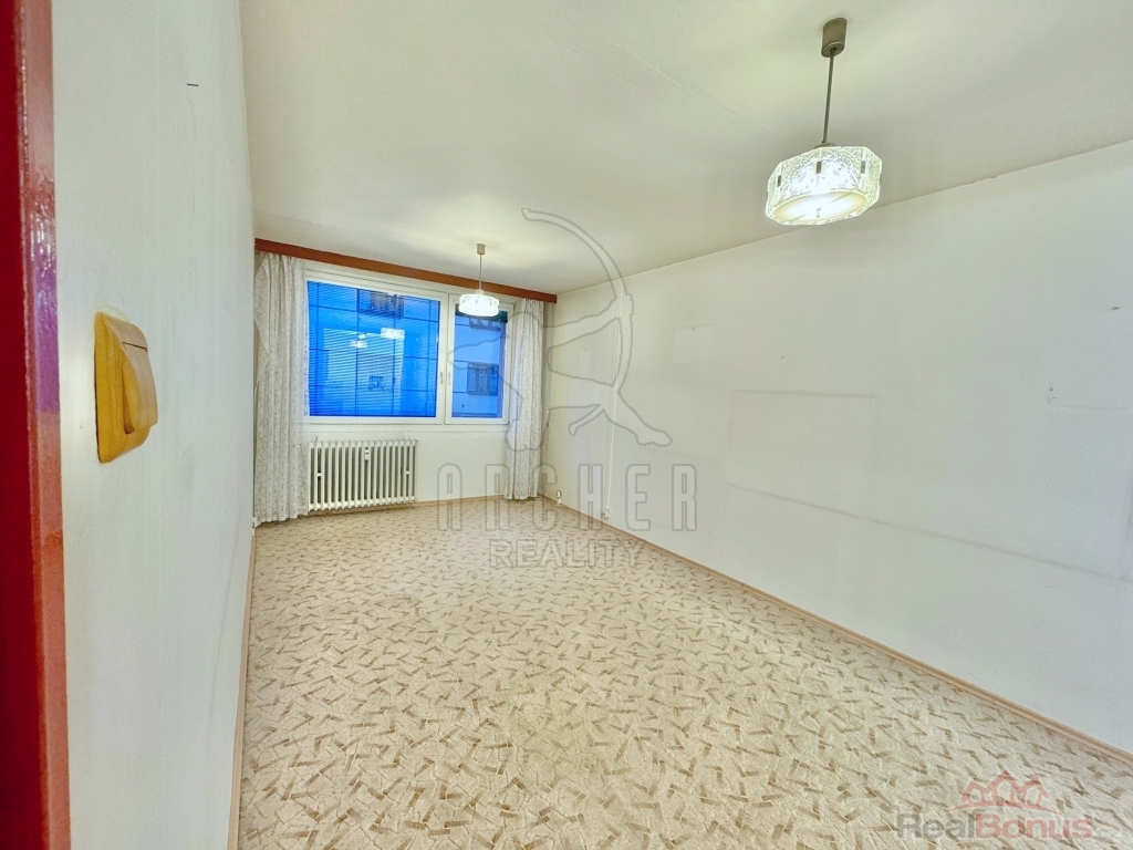 Velká okna prosvětlují pokoje ze západního směru. Koupelna má vyzděné jádro a toaleta je v samostatné místnosti. K bytu patří komora, hned vedle vstupních dveří. Byt je umístěn ve zvýšeném přízemí a má nízkou prodejní cenu, protože je ve stavu k rekonstrukci. Jelikož konstrukce domu je panelová, je možné udělat rekonstrukci s poměrně nízkými náklady.