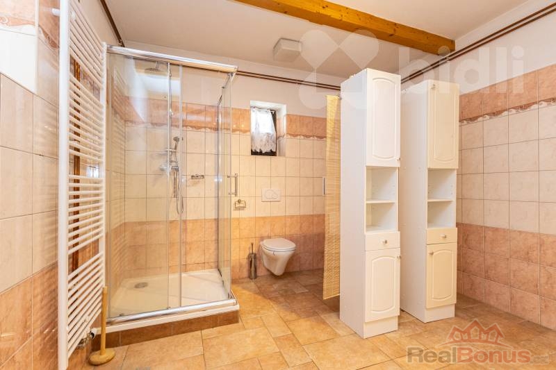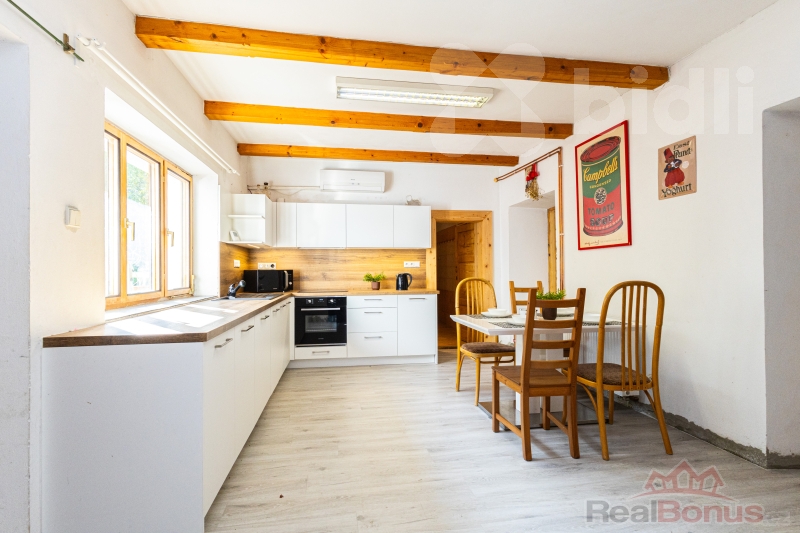 Rodinný dům je po rekonstrukci - Kuchyňská linka se spotřebiči, indukční varná deska, horkovzdušná trouba, lednice s mrazákem, myčka, nová koupelna s rohovou vanou, sprchovým koutem a WC, nové rozvody elektřiny v mědi, nové rozvody vody v plastu, nová okna. Vytápění budovy a ohřev vody tepelným čerpadlem. Na rodinný dům navazuje přízemní zděná stavba, která slouží jako technické zázemí a úložný prostor. Naproti rodinnému domu se nachází zděný objekt bývalých chlévů. Dále objekt zděné stodoly umístěný v čele uzavřeného dvora a zděný přízemní objekt bývalého vážního domu. Objekt je přístupný z hlavní komunikace procházející obcí, kde je dnes instalována elektrická vjezdová brána. Pozemek je oplocen masivní zděnou kamennou zdí.