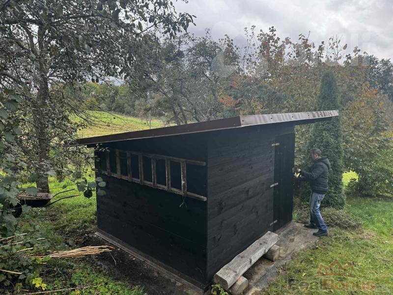 Na pozemku se nachází dvě menší chatky (budky). V jedné z nich je možnost přespání - je zde jednoduché zařízení, posezení s ohništěm. Vedle stojí suché WC (kadibudka). Každý nový majitel může prostor upravit dle vlastních představ - ať už pro relaxaci, přespání, posezení stanování atd.