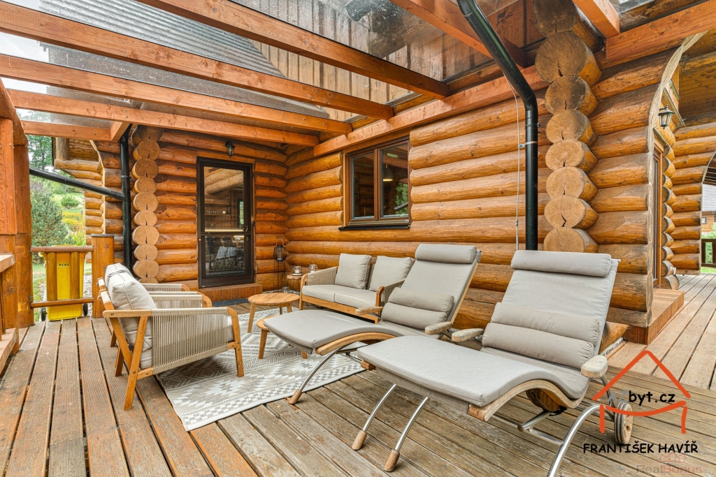 Vstupte do světa, kde se snoubí noblesa přírodních materiálů s moderními technologiemi. Tento unikátní srub (kolaudace 2018) je součástí exkluzivního resortu River Village Orlík, tvořeného pouhými osmi sruby v malebném prostředí jižních Čech.
