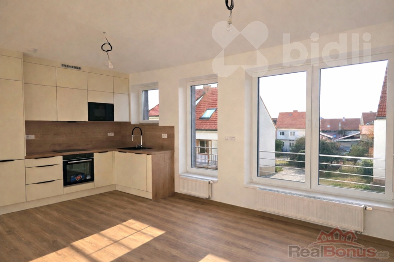 Součástí bytu je nová kuchyňská linka vybavená vestavěnými spotřebiči - lednicí s mrazákem, mikrovlnnou troubou, indukční varnou deskou, elektrickou troubou a myčkou. Ostatní místnosti jsou nezařízené, což umožňuje budoucím nájemníkům upravit si interiér dle vlastních představ.