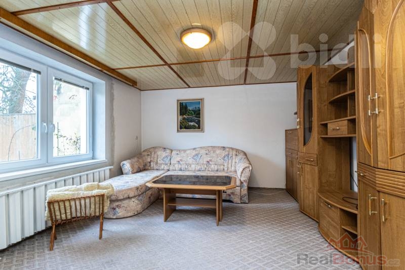 Suterén domu skýtá další obývací pokoj, toaletu a několik místností vhodných jako sklad či dílnu. Je zde i starší kuchyňská linka a sklípek. Garáž, která se nachází mimo dům je vhodná spíše pro menší vozidlo s úzkým vjezdem, případně ji lze využít jako dílnu.