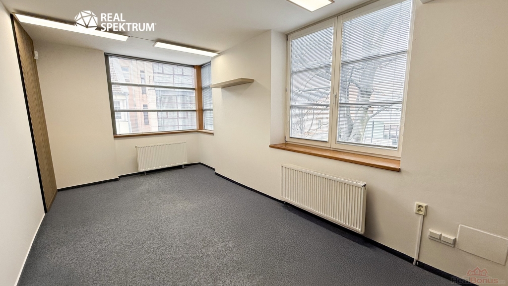 Vybavení kanceláře: zátěžový koberec, nová výmalba, zabezpečovací systém, v domě centrální recepce, internet. Bezproblémové parkování na veřejném parkovišti před budovou. Je možné pronajmout parkovací stání v podzemních garážích budovy. Kancelář se nachází na výborném strategickém místě, v bezprostřední blízkosti samotného centra (dojezd 3 minuty).