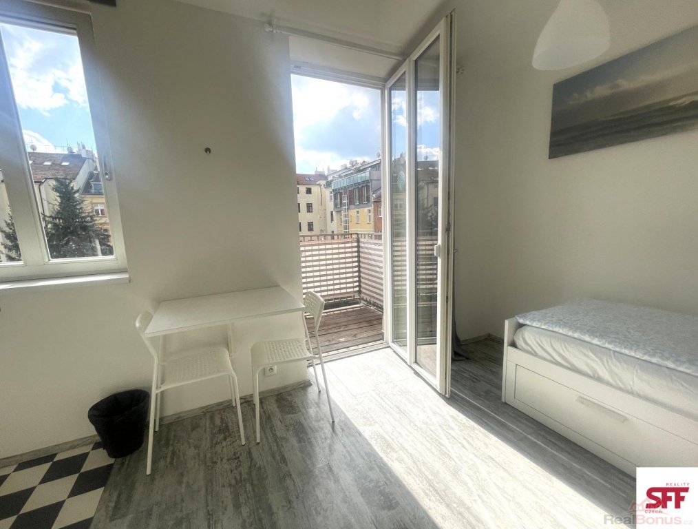 Neplatíte provizi. Volný ihned. Nabízíme ke krátkodobému nebo dlouhodobému pronájmu světlé a vybavené studio (1+kk) o velikosti 21,2 m2 s balkónem 2,5 m2, umístěné ve 4. patře udržovaného historického domu bez výtahu v atraktivní lokalitě Praha 6 Pohořelec, jen pár minut chůze od Pražského hradu.