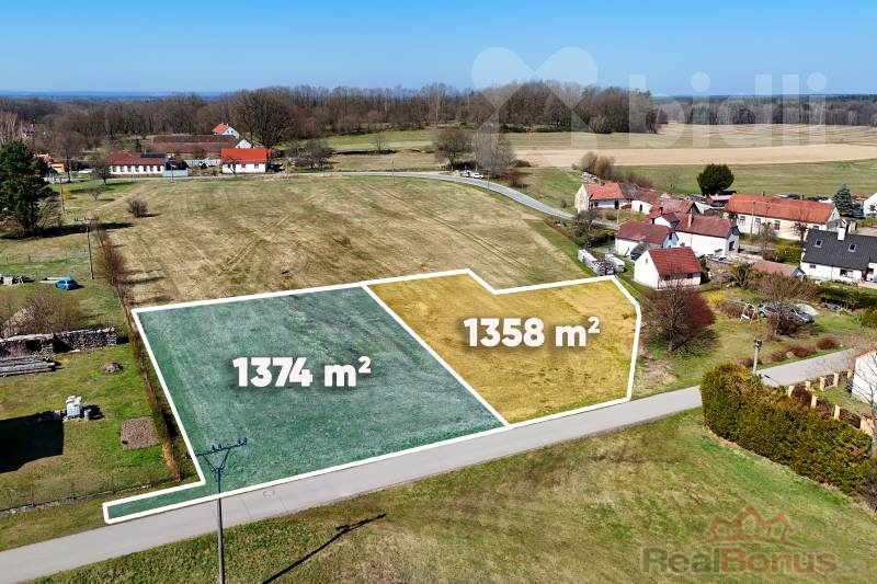K prodeji jsou dvě rozlehlé stavební parcely o výměrách 1358 m2 a 1374 m2. Pozemky se nachází v klidné části obce, přímo u asfaltové komunikace s ideální východní orientací vjezdu.